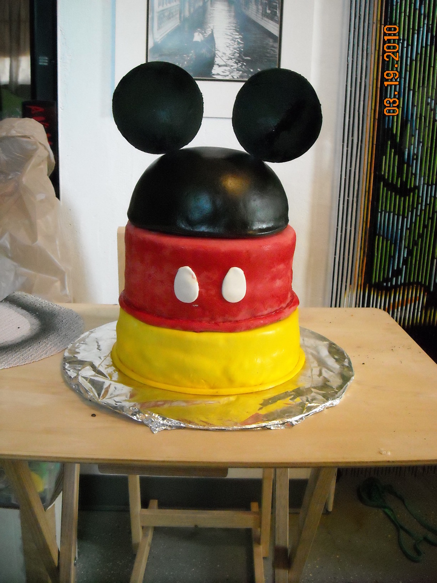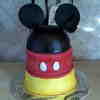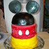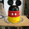 2 Cake tier, chocolate cake with Oreo Filling - which is totally yummy, yellow tier covered in MMF airbrushed, Red Tied covered in Satin Ice (not a huge fan but its nice to not have to color red!) black hat top is leftover cake - once the rounded tops were cut off the 4 cakes they were crumbled and mixed with some icing, packed into a bowl and frozen, covered in MMF and airbrushed black, ears are gumpasted airbrushed. Made for my MIL, a mickey lover, but not too kiddie :) She loved it! It made my day and it was SOOO fun to make - with my goddaughter - the best mixer ever!