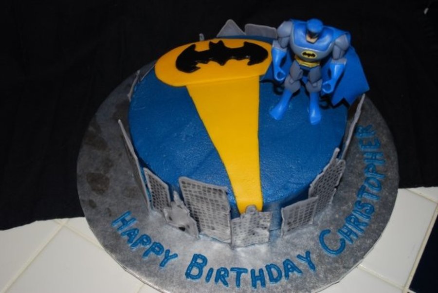 9" covered with buttercream. Colorflow buildings, and fondant searchlight. Got the idea from another cc'er