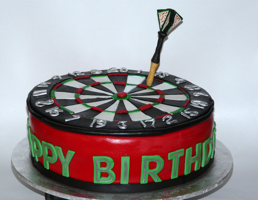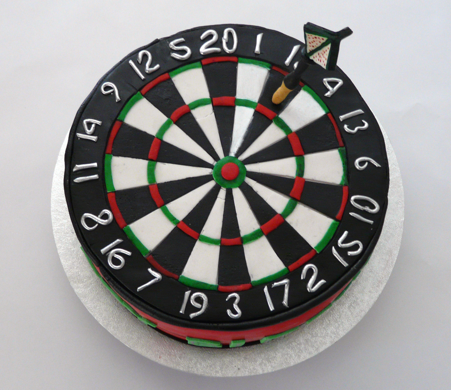 Dart board complete with handmade dart. All edible fondant and gumpaste