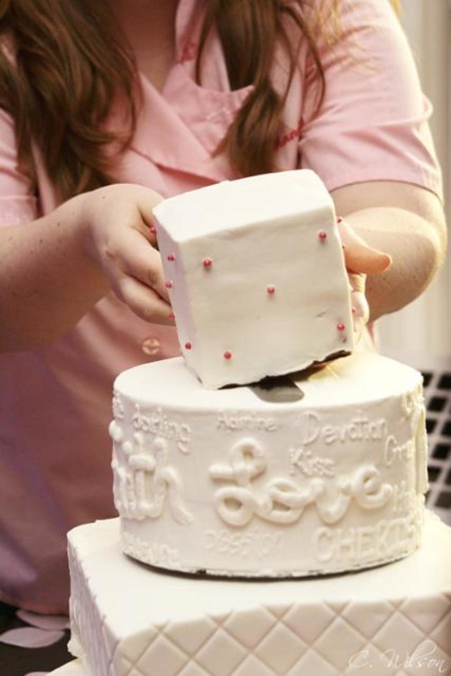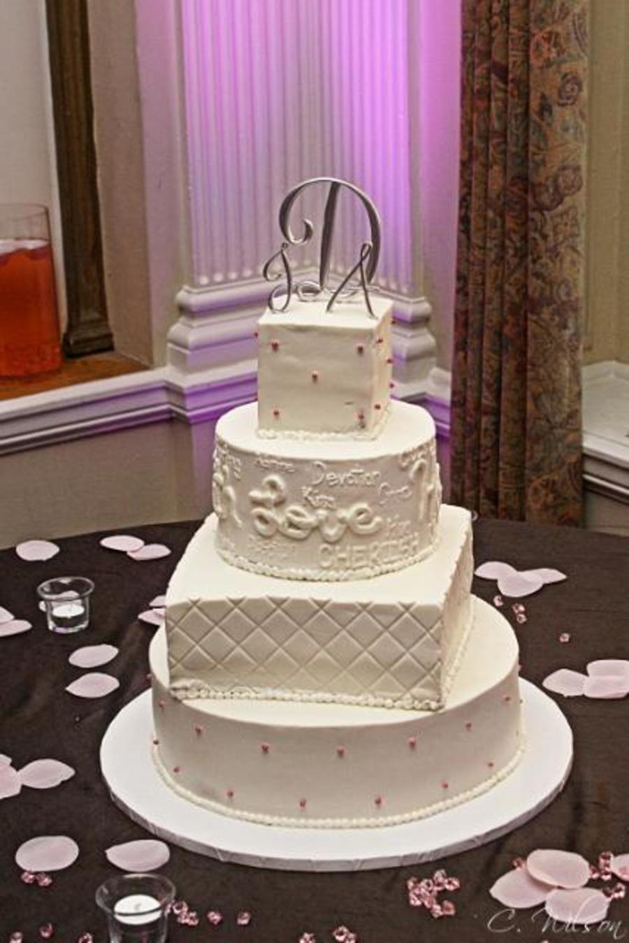 Mixed round and square with painted dragees, diamond pattern and lovey dovey words piped with various fonts.