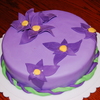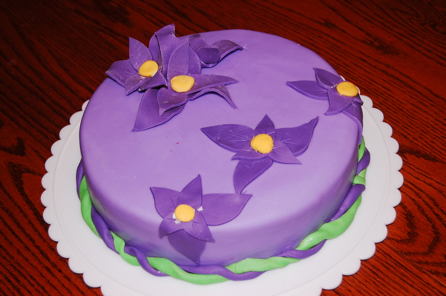 Red velvet cake with cream cheese filling - Wilton's ready to use fondant colored with Wilton's lavender and a touch of black. First time ever using fondant - didn't have any tools except fondant smoother so cut flowers with exacto knife