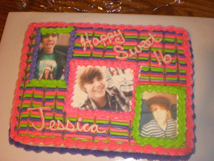 white cake with butter cream icing with edible images of pictures