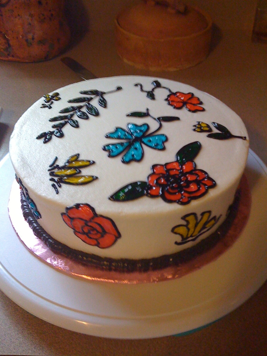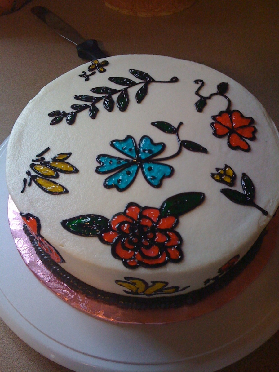 My first attempt at stained glass technique. All buttercream with piping gel stained glass