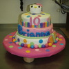 So, I was excited that I had some time to work on the cake. No last minute stuff like the week before. I started baking, made the frosting, cooled the cakes. Alright! Now just frost them and decorate them. No, I made chocolate cake.....of course the order was for white cake. Soooo I had to start all over again. Baking at 1 am the morning the cake was due! Ugh! And then I made IMBC which I froze to stiffen up, but instead I ended up separating the sugar and butter and the BC ended up having this horrible consistency :( I made it work, covered the cake, and delivered it hoping it would taste good. They loved it! Cake inspired by sleepytortuga. White cake, IMBC, and fresh strawberries in between. Head made out of RKT