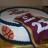 This is a vanilla cake with buttercream frosting and fondant accents. The jersey and basketballs are fondant. The little boy that I did this cake for had a jersey party and i did the jersey to match his. Needless to say he loved it. It was my first jersyey so I see all kinds of imperfections but I still like it. :-) tfl!