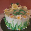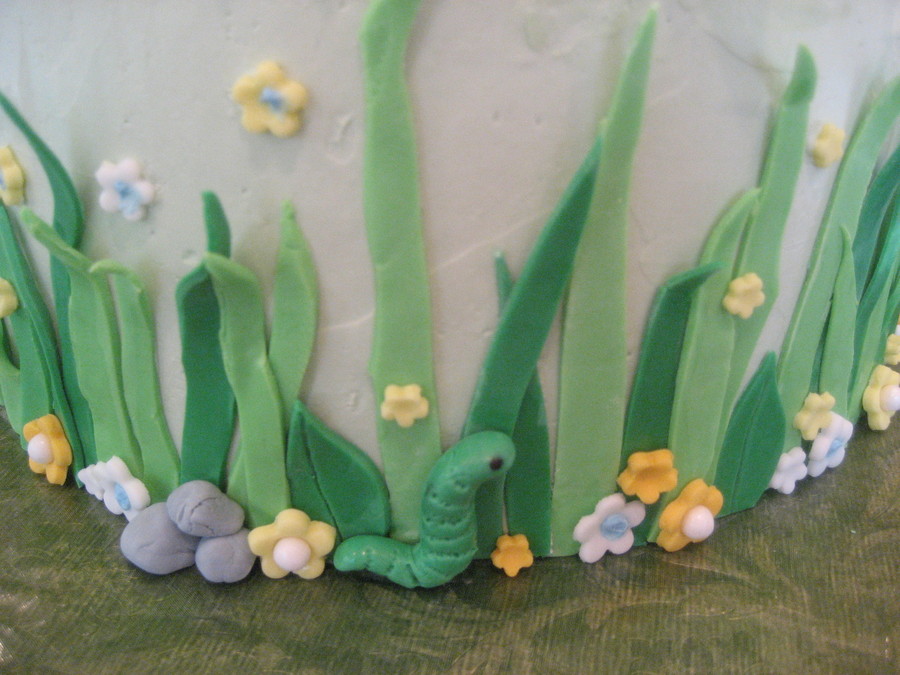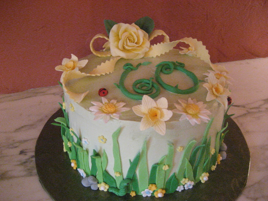 Swiss meringue buttercream with fondant decor around the side and gumpaste on top