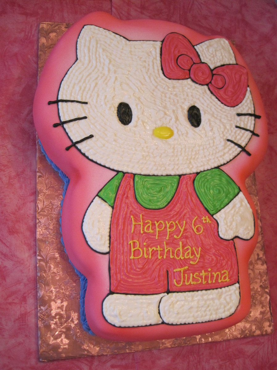 white cake with straw filling, fondant airbrushed pink, royal icing used for hand piping Hello Kitty