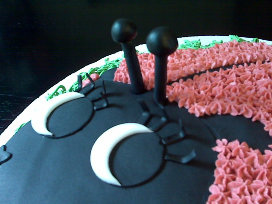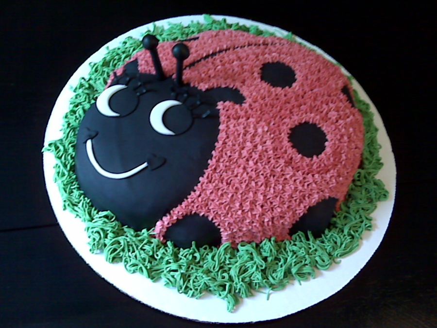 This is the Wilton ladybug pan. This marble cake is all buttercream except the white and black parts, which is MMF. I added some CoolAid to the frosting to give it an extra yummy scent, extra coloring (I was running low on my food coloring) and taste. It smelled like strawberry bubble gum!