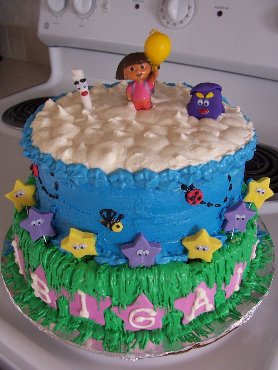Dora cake with bc icing and fondant accents- made from a couple of ideas from cc (thanks)