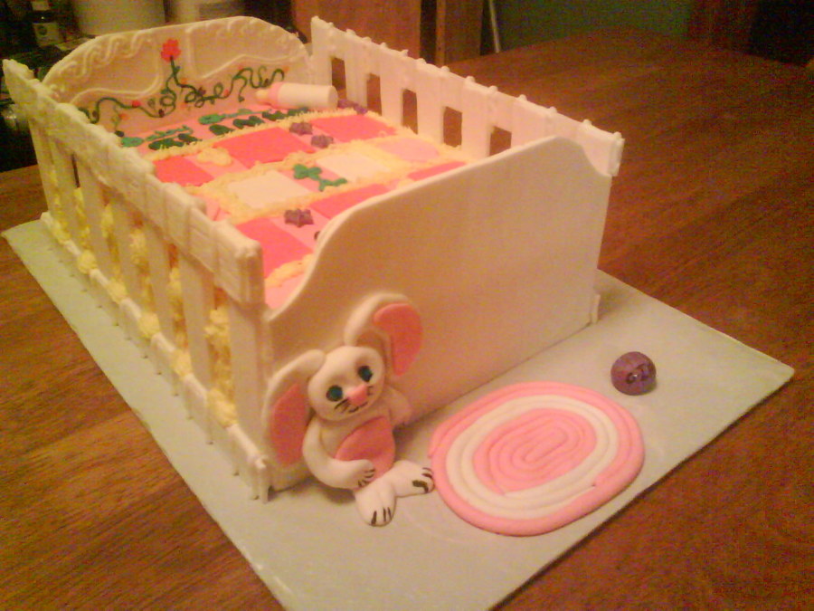 Fondant, gum paste, hand painting and piping shower cake for my son's baby
