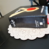This Twilight Cake is for my sister, who is really into the series. This cake was a suprise and she loved it! White chocolate is the cake flavor and is torted with white buttercream and whole blueberries. The cake is coated with white buttercream and covered in MMF. The white writing is royal icing, the hands are flesh colored fondant painted with brown food coloring for shading. The apples shading is also painted with brown food coloring. I had my 4 yr old son hold an orange for a long time so I could use his finger placement as a guide for my shading the apple. My son didn't mind ( I had to give him 3 Oreos). The bookmark is also MMF.