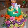 Dora the Explorer cake for a friends daughters 3rd birthday party. Butter Cream icing, lolipops for the stars and a bubble machine topper with artificial flowers. She loved it.