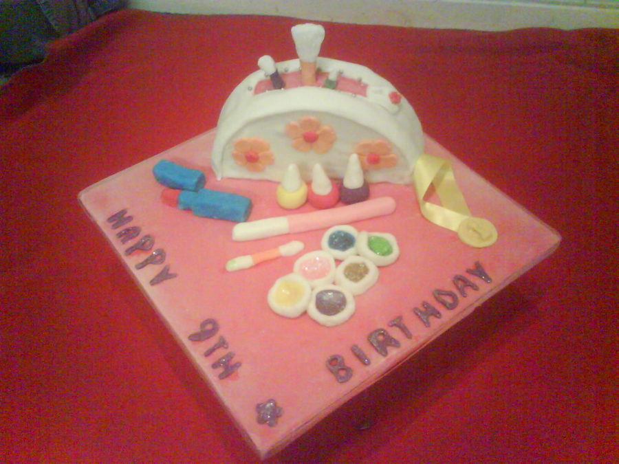 cake for a young girls birthday, who enjoys going to dance comps, so glittery makeup is essential! edible glitter used for eye shadows. thanks for looking