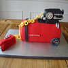 This cake was for a little boy who loves air compressors, and all he wanted for his birthday was an air compressor cake. It is yellow cake with cookies and cream filling. Fondant and gum paste accents.