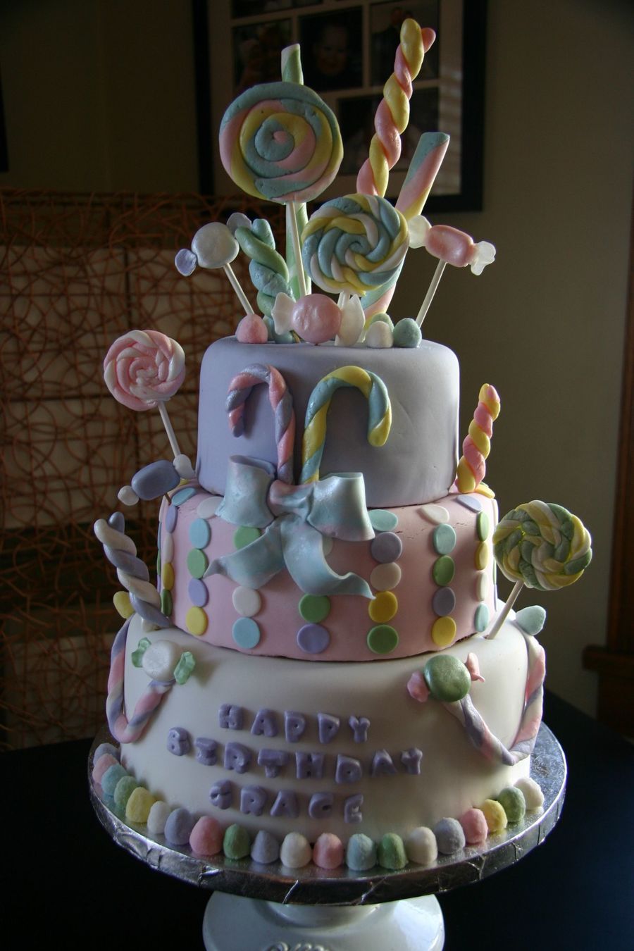 3-Tier, 10", 8" and 6" WASC with Toba Garrett's Chocolate Buttercream. Cakes covered in fondant. Candies made from fondant/gumpaste and dusted with luster dust. Took inspiration from many cakes on CC. Thanks for looking!