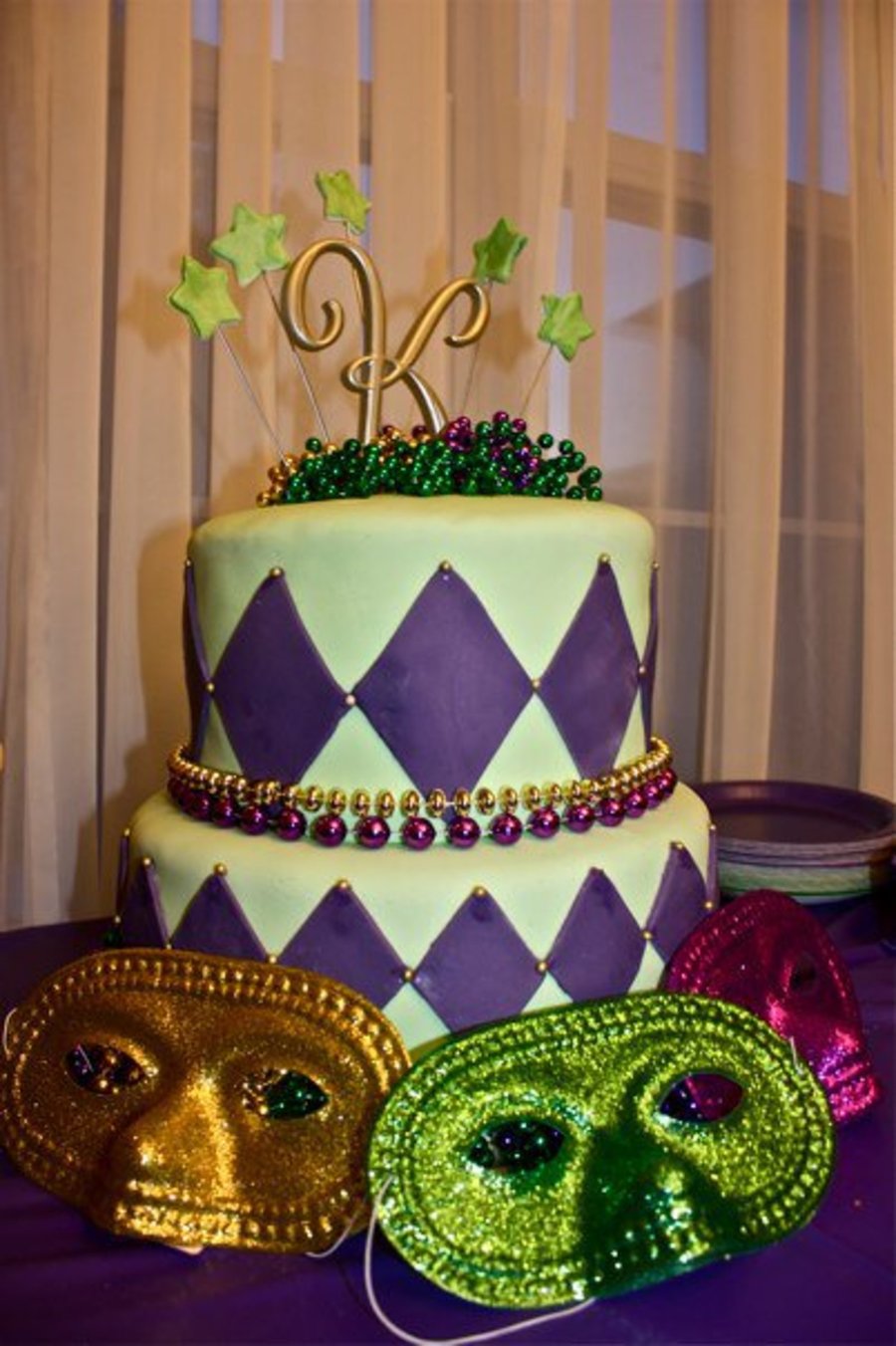 2 tier cake covered in fondant - green and blue. Beads added for that something extra :)