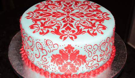 Teal And Red Bridal Cake