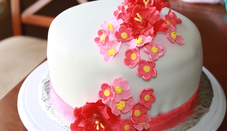 Pink And Red Floral Fondant Cake