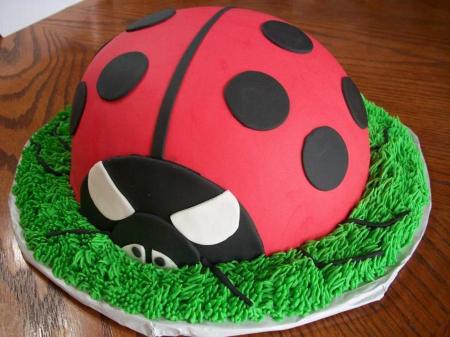 Birthday girl loves ladybugs. this is a chocolate cake baked in a stainless bowl and covered in fondant.