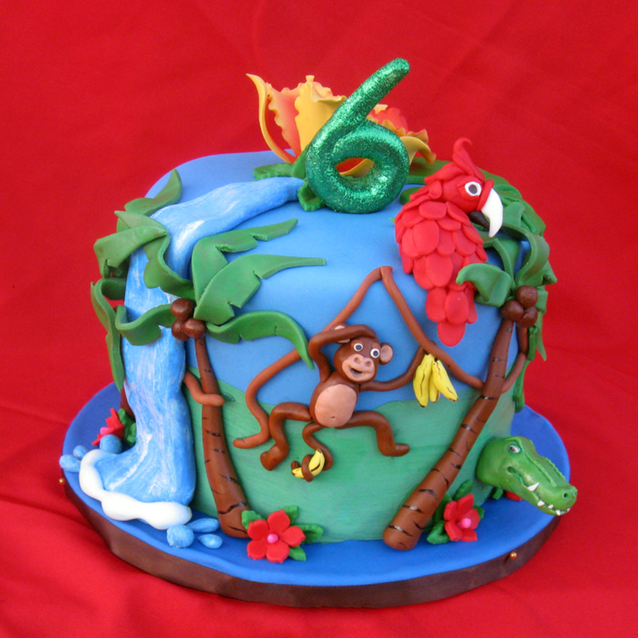 This 6 yr old celebtarted her birthday at Rain Forest Cafe. "6" is coated in disco dust. (Inspired by CakeLava).