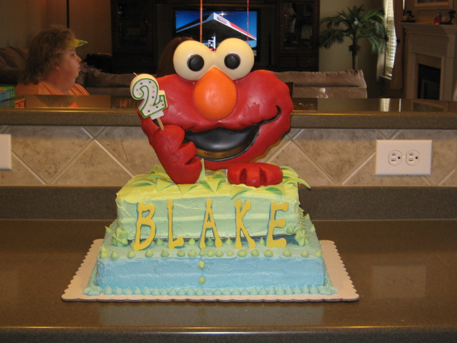 Got the idea from Wilton web site. Elmo head and other decorations are made with melting discs, his hands modeling chocolate. The third cake I'd made. Took a long time but made it for my nephew so it was worth it.