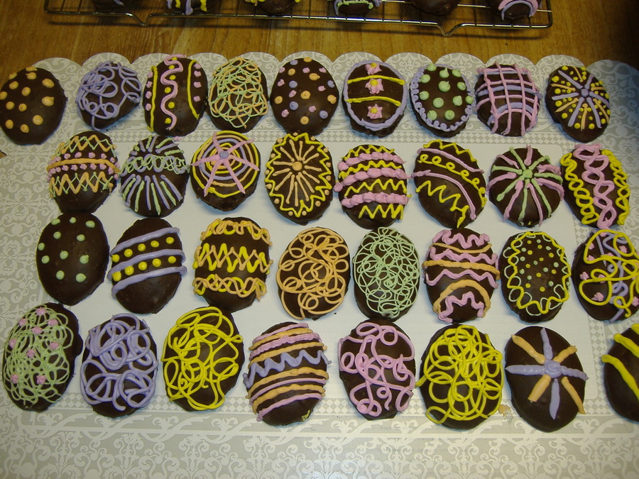 I used the same recipe to make cake balls, except I made them in the shape of eggs. I used royal icing for decorating.