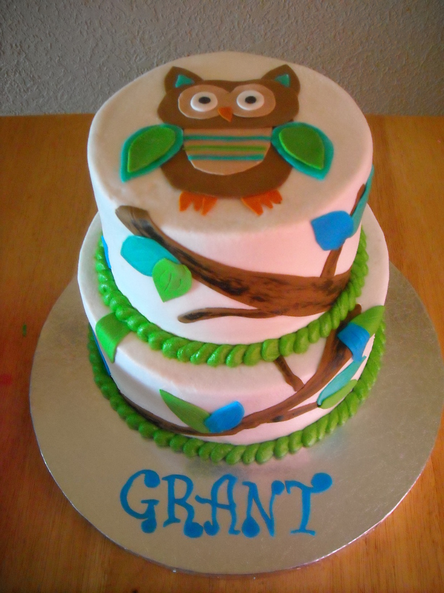 6/8 in buttercream with mmf tree limbs and leaves and gumpaste owl.. they had the owl painted in the babys room.. I dont think this is the best buttercream job ive done, but was happy with accents. thanks for looking.
