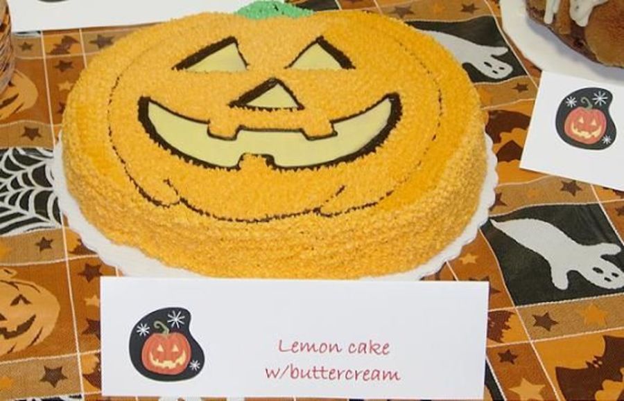 This was one of five cakes I made for work on Halloween. It's lemon with buttercream.