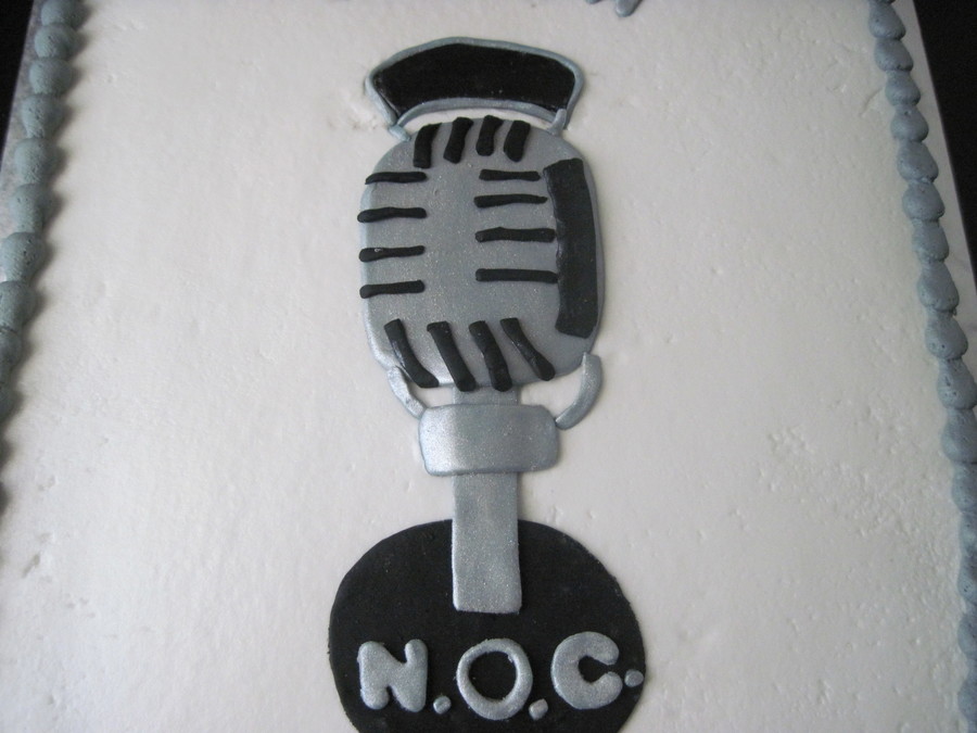 BC over vanilla with fondant deco. Old school studio microphone.