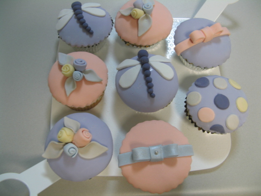 these were coconut cupcakes with white chocolate ganache and fondant. I got the ideas out of a couple of books and wanted to give it a go. sorry for the bad picture.
