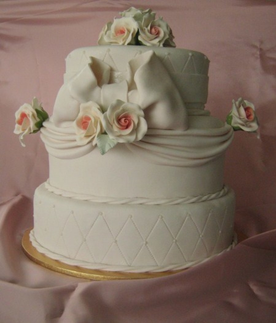 White Chocolate Cake with White Chocolate Ganache. The Roses were pre-made from an online company. Thanks for looking :)