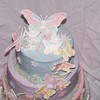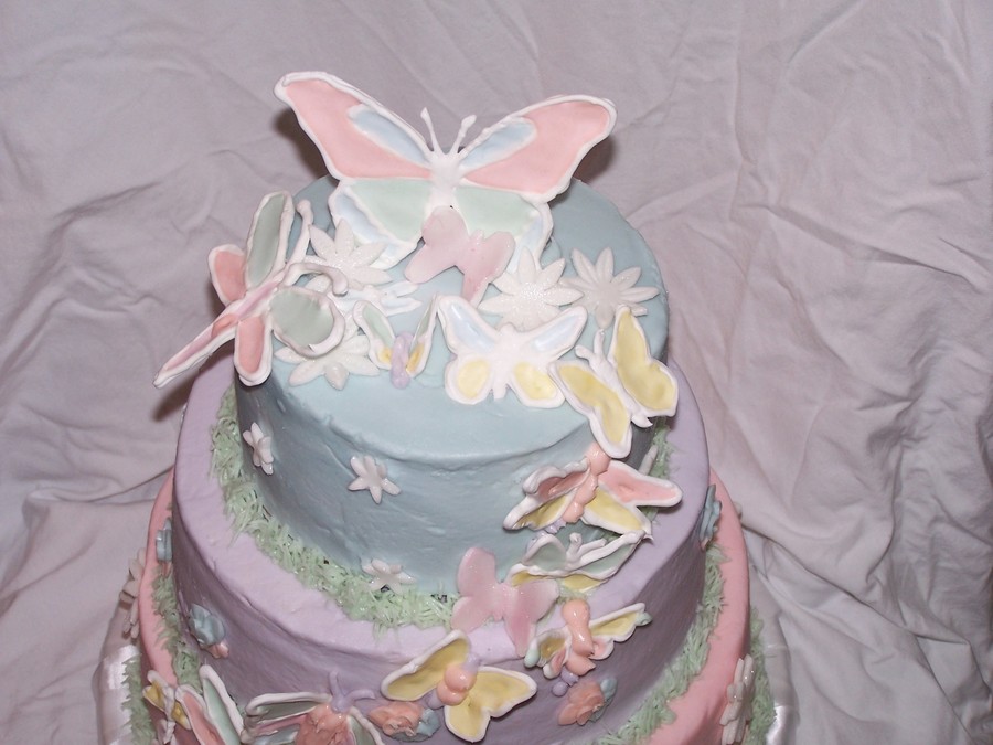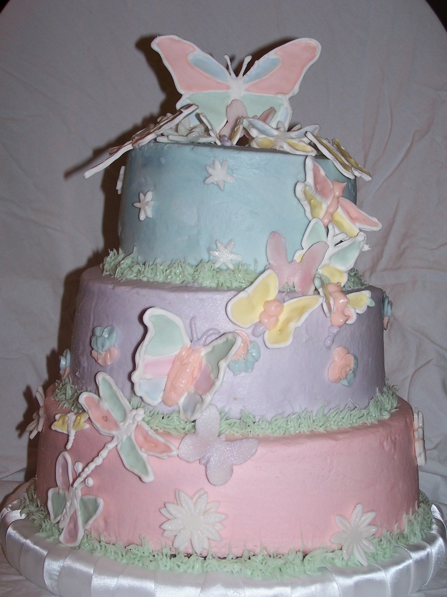 Yellow cake, cookies and cream filling, buttercream icing. Color flow, fondant and buttercream decorations.