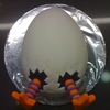 This is my first attempt at a carved cake, and my second try with fondant. This was inspired by a cake I saw on Cakecentral and another on Flikr, but I added my own spin on it with extra cracks in the shell and Big Bird legs. The cake is strawberry with vanilla frosting and fondant. I skewered the fondant legs into the cake and they sagged from the weight. Next time I use dowels. I put down black fondant first, behind the white fondant, so it'd look better when I cut out the cracked area (thanks Duff). Unfortunately you can see the two rectangular patches of black showing through the white a little-- but it's not too bad... I'm still learning.