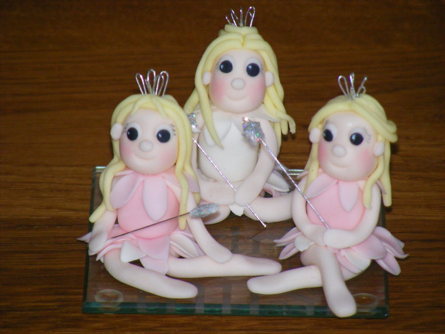 all sugarpaste, all edible except wand and crown. First try at fairies, see sooooo many beautiful ones here on CC that I was inspired to give them a go! They have no cake to go one as yet, but its always a good excuse for another cake, I'm sure they wont be homeless long! TFL
