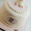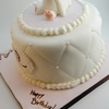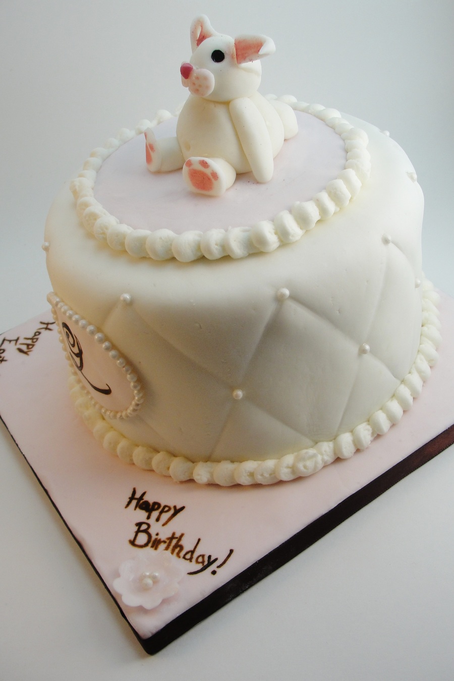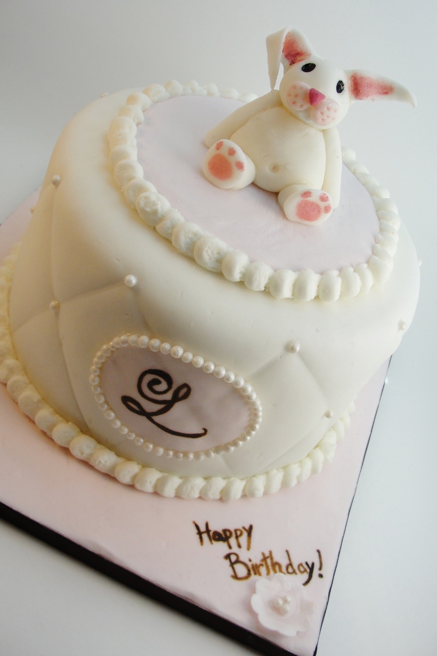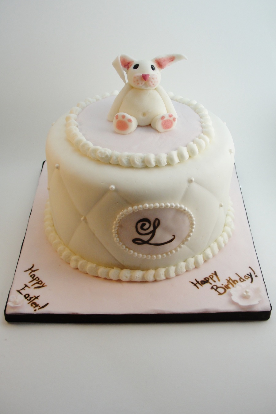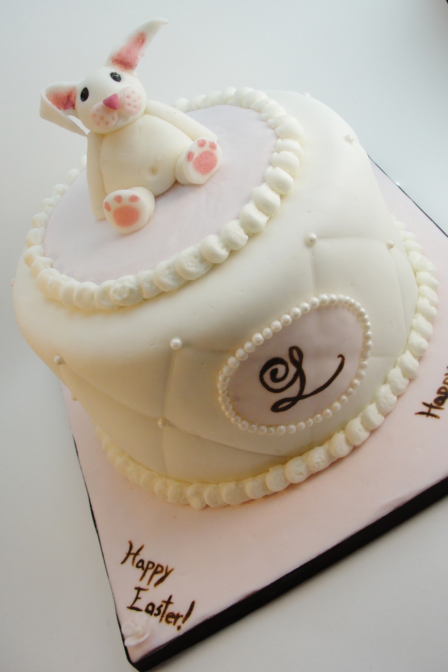 So my Aunt's birthday was last week and she wanted to celebrate today at the same time as Easter so I mixed the 2 cakes together. The "L" is for Lynn which is her name, the "Happy Birthday" is obviously for her, and the "Happy Easter" & bunny is for Easter of course. The flavor of the cake was also done for my Aunt as it was "Caramel Machiatto", her favorite Starbucks coffee. Espresso cake with a caramel filling and caramel buttercream. Everything is MMF! This is my first time doing a quilt pattern and I'm not thrilled with the turn out but that's ok. I did like 7 cakes in the past 10 days or something which I am not used to doing so I was SOOO wiped out last night, I just didn't care that it didn't look perfect. lol! Thank you to whoever uploaded the little bunny yesterday, he was my inspiration for my bunny. :)
