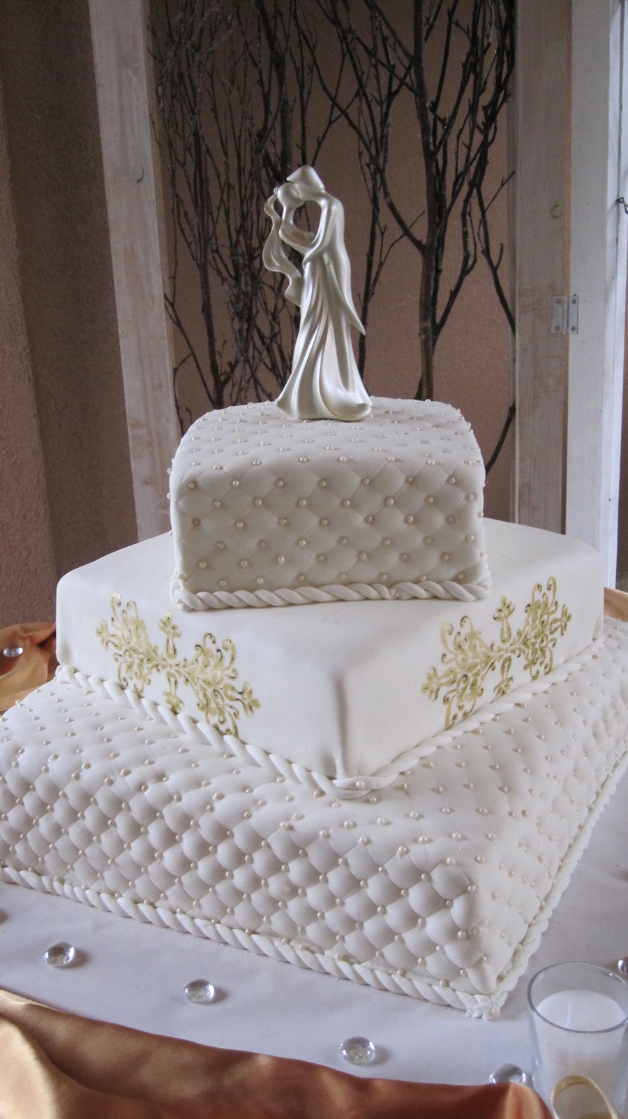 WASC with buttercream filling...Covered in fondant. It was my first wedding cake so was so nervous making it cause I didnt want to disappoint the bride and I wanted to make it exactly like what she had in mind. In the end...she loved it!!!! =)