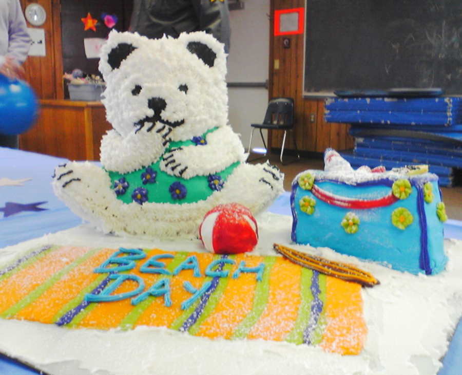 A cake that I made for a decorating competition at a winter carnival that in the town that i work for. Polar bear was made with the wilton 3d bear. The theme was "winter". I won second place- yes this was a very small competition!!!