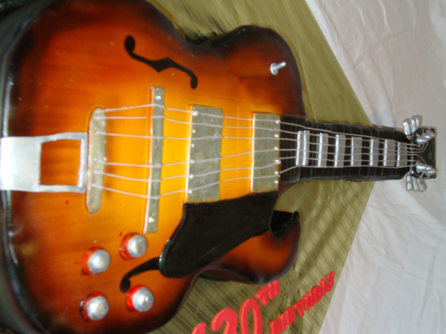 l5 wood grain guitar. cake & RCT necak. all fondant and airbrushed.
