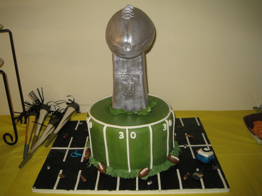 Made this for a SuperBowl/30th birthday party. Trophy is ricekrispiestreats. Ran out of time to finish the after math of the tailgating party in the parking lot!