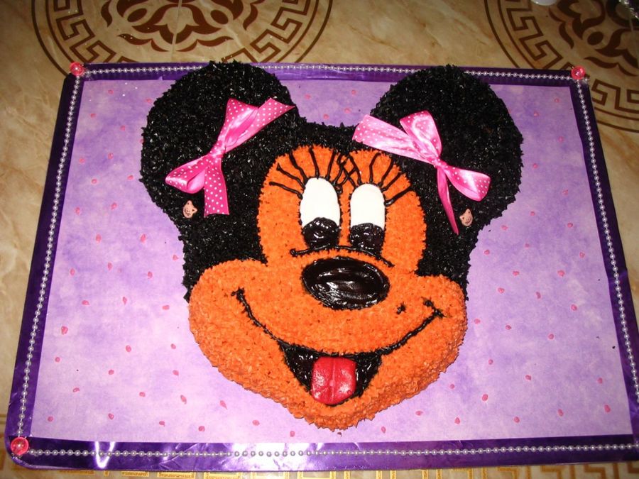 ok here goes another monnie mouse I actually have a customer who loves minnie mouse. I really like the ribbons yellow cakes with bc, purple border with pearls on top.