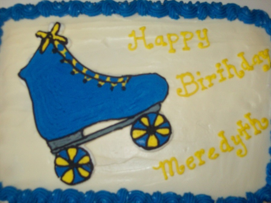 This is a white cake with CC icing. The roller skate is a FBCT. This is my second cake and my first attempt at the FBCT. I am just learning as I go and this site is amazing.