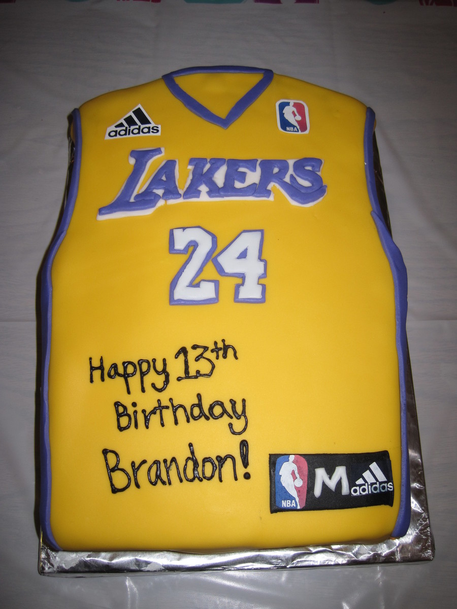 9X13" cake pan cut into shape of jersey, then covered with fondant overlay