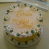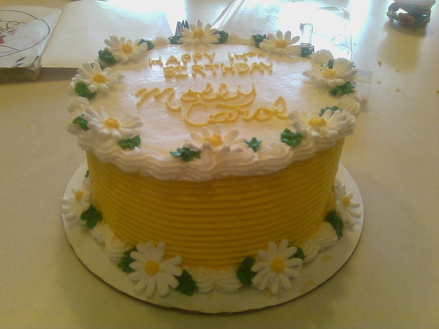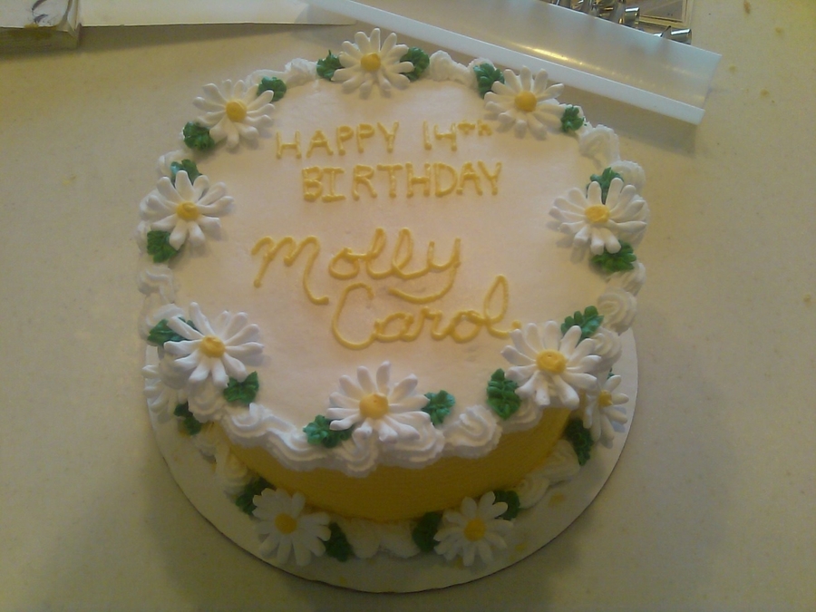 Cake I made for my husband's little sister. Royal icing daisies and buttercream frosting.