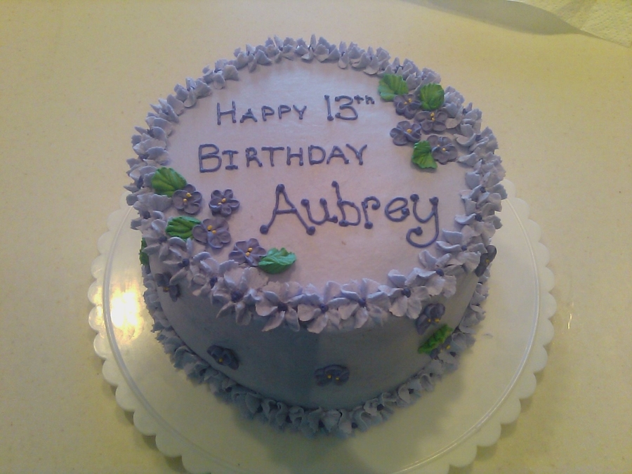Cake I made for my niece recently. Violets are royal icing. Buttercream icing with lemon oil added. It was a lemon cake.