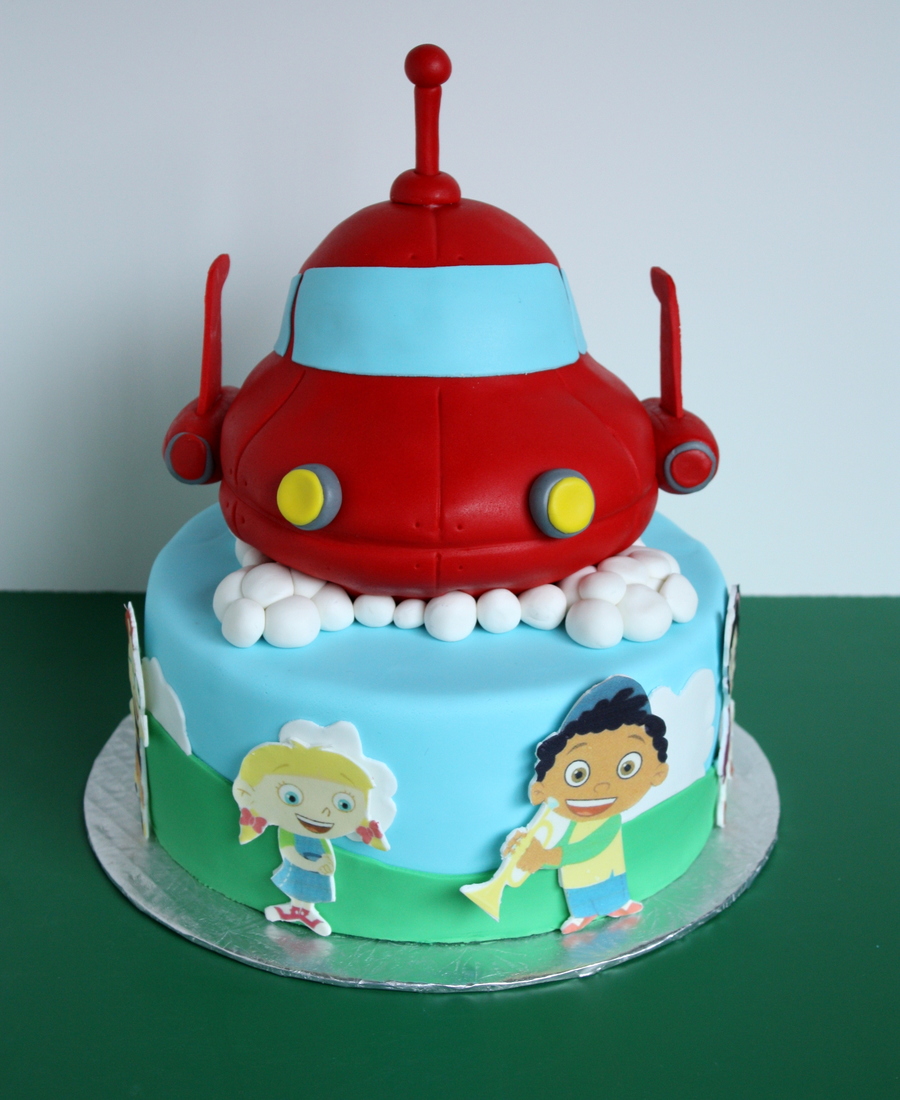 The rocket was carved from 6" and 4" rounds. The characters are edible image plaques. TFL