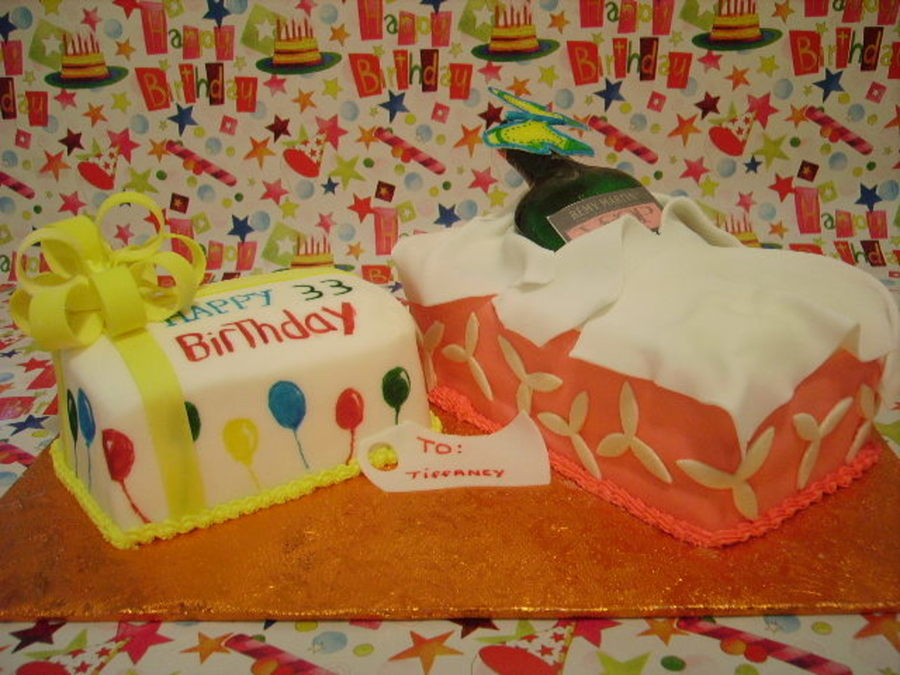 Both cakes are choc with butter cream frosting all coverd in fondant, the bottle is made out of sugar, the lable is edible fondant. TFL