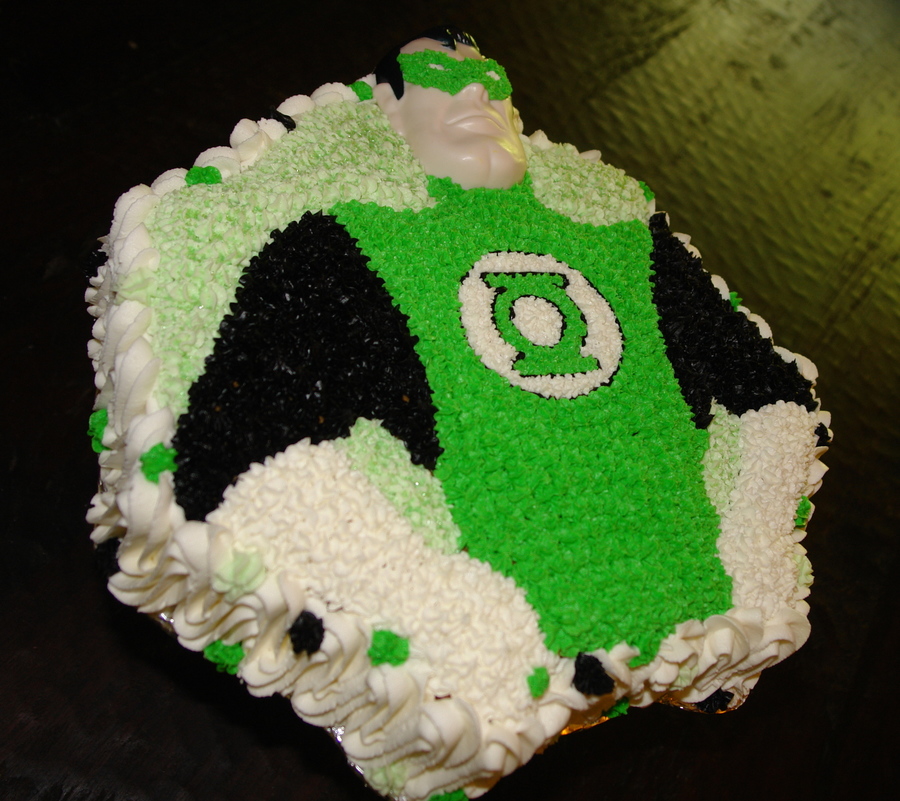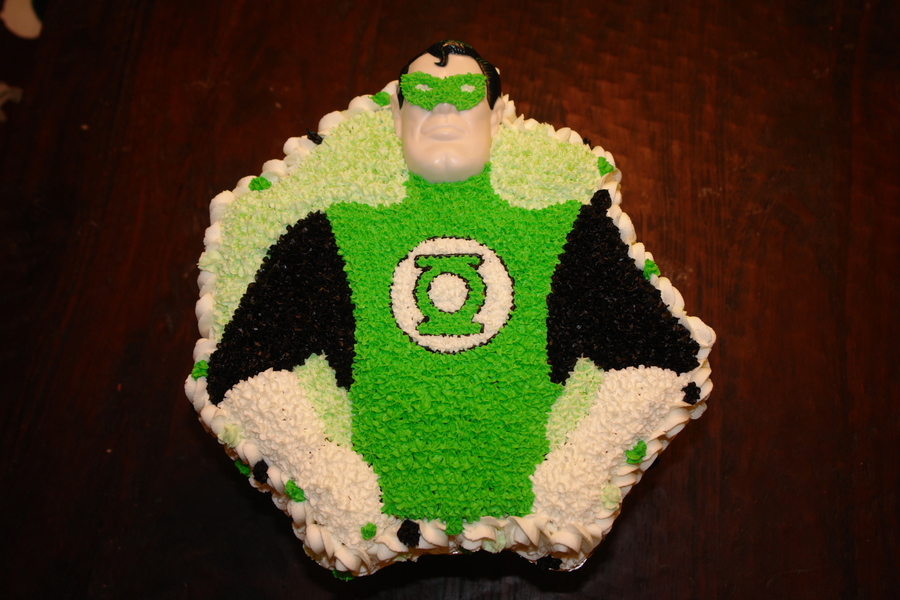 Green Lantern cake for my son's sixth birthday made using the Vintage Superman/Batman Wilton pan.