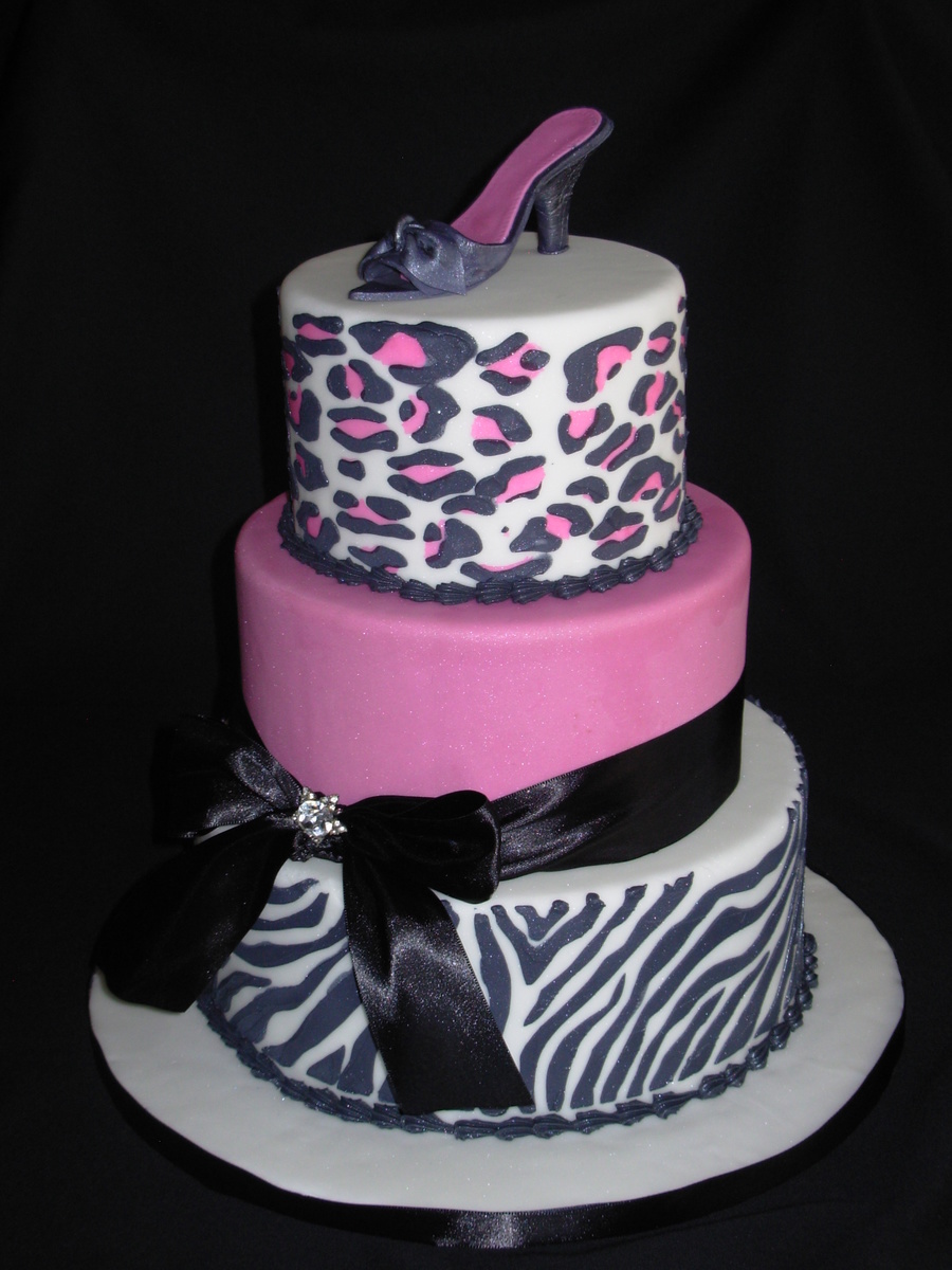 Dummies for a display at an auction. Fondant with royal stenciling. Gumpaste shoe. Real ribbon - didn't want to make black fondant!