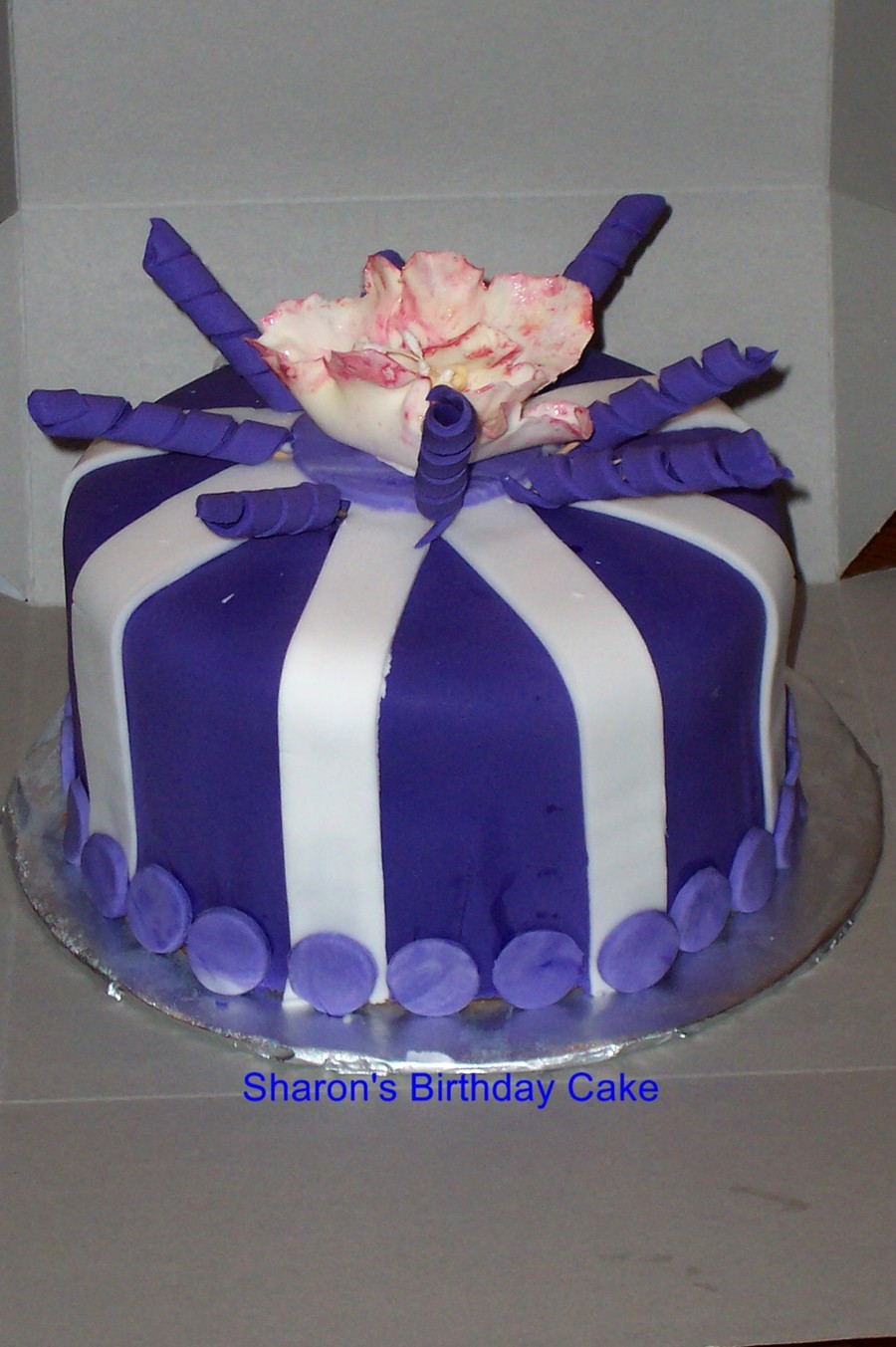Lemon Cake, Purple and White Fondant, White Bow did not survive, had to substiute with gumpaste flower!