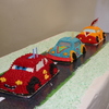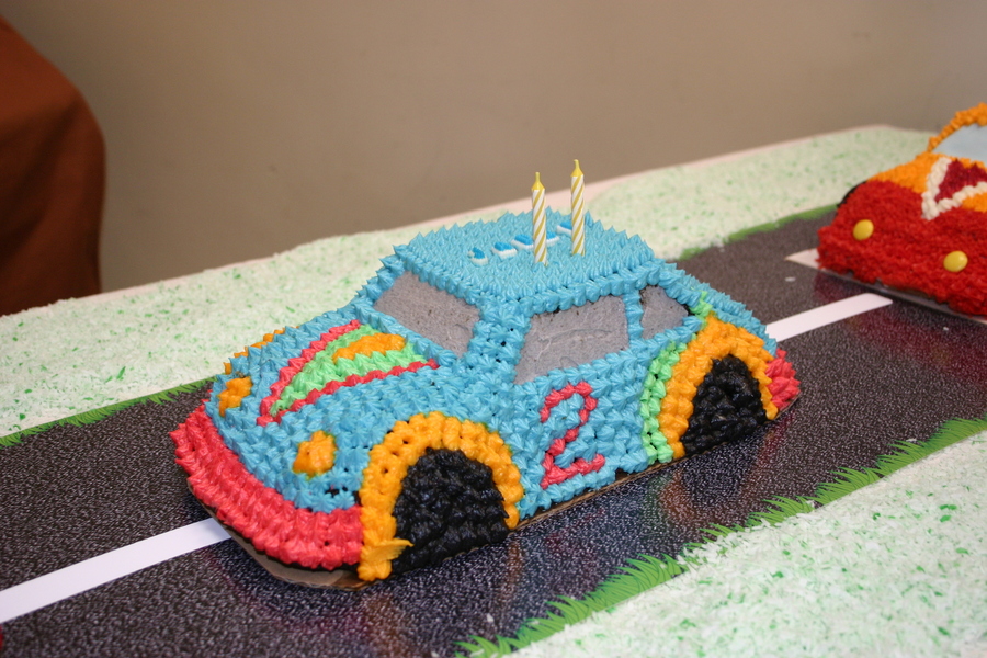 We shared a birthday with 2 others and each used the same car tin but decorated them differently. They were all displayed on a road and looked really cool. All done in buttercream.